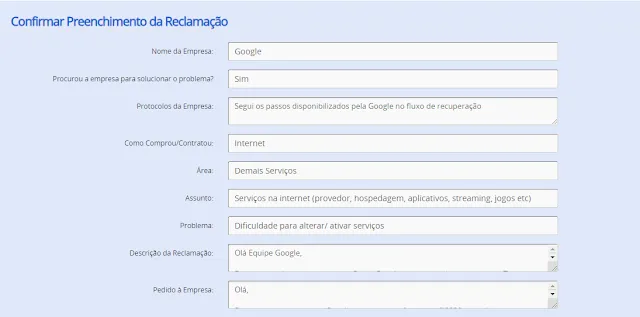 Porém, se algo novo acontecer, é recomendado que você abra outra solicitação para o Google. No campo "Descrição da Reclamação" faça um breve relato da solicitação anterior, citando o número do Protocolo.